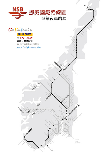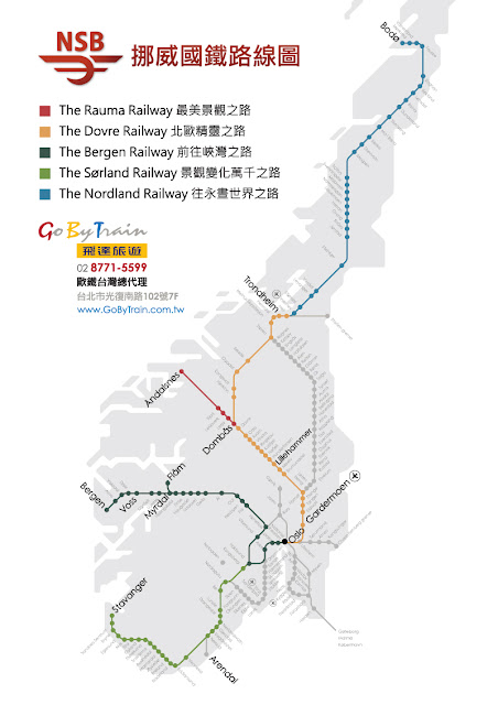 挪威國鐵有五條線,這裡由北往南介紹: